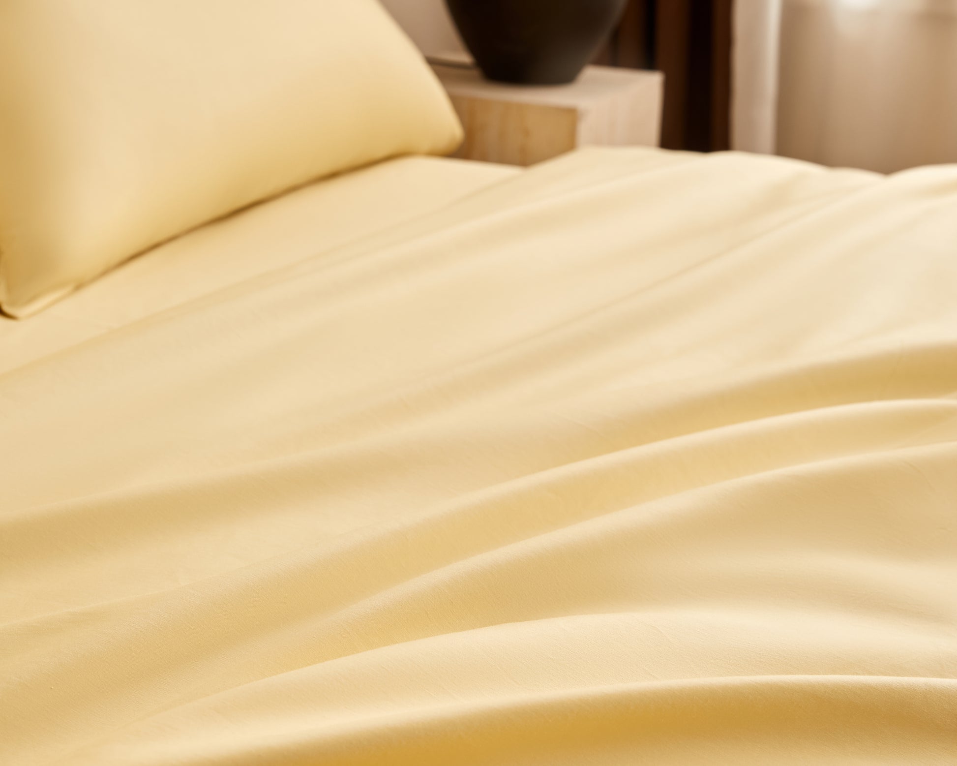 Soft, smooth fabric in a warm butter-yellow tone that adds a touch of elegance and comfort