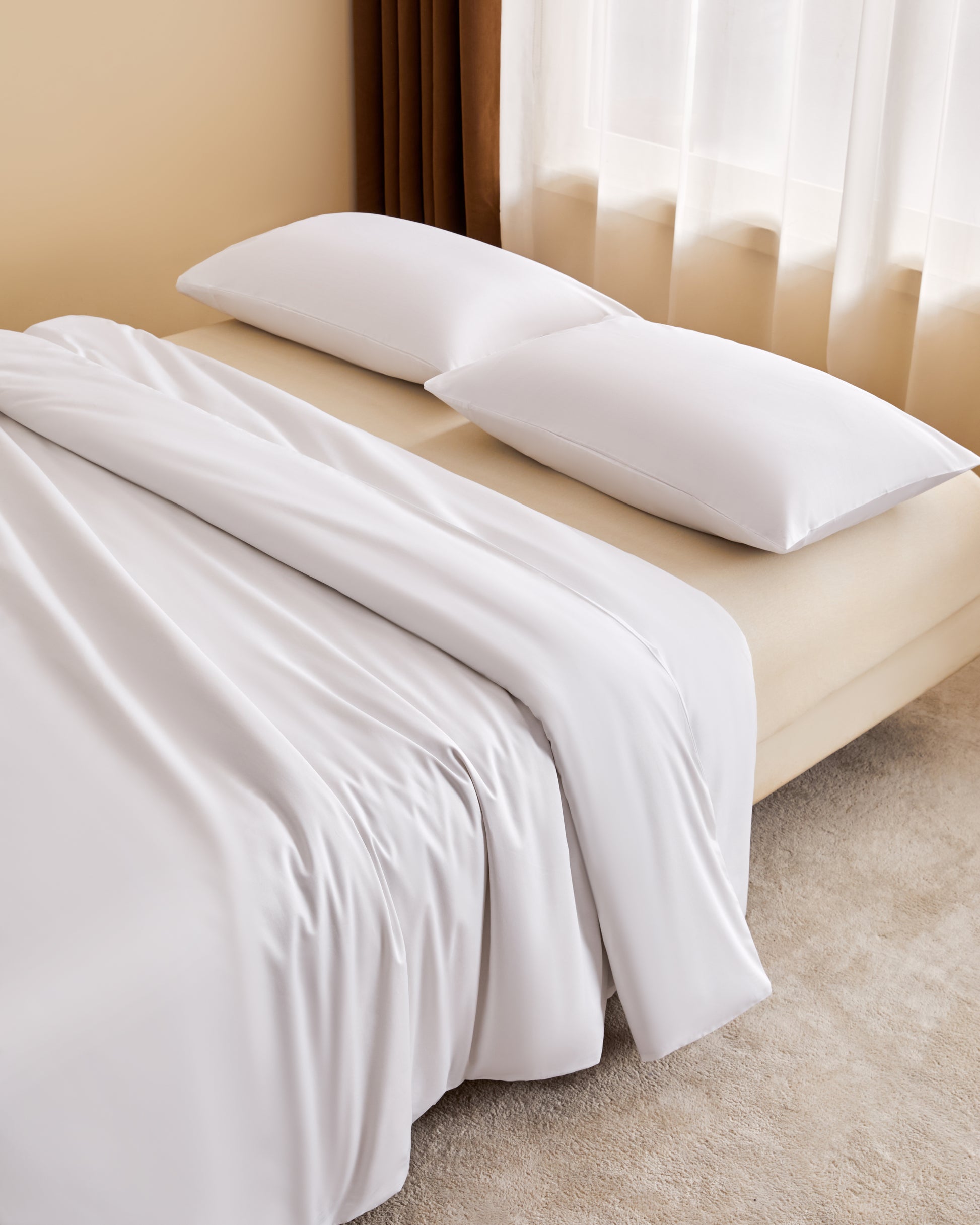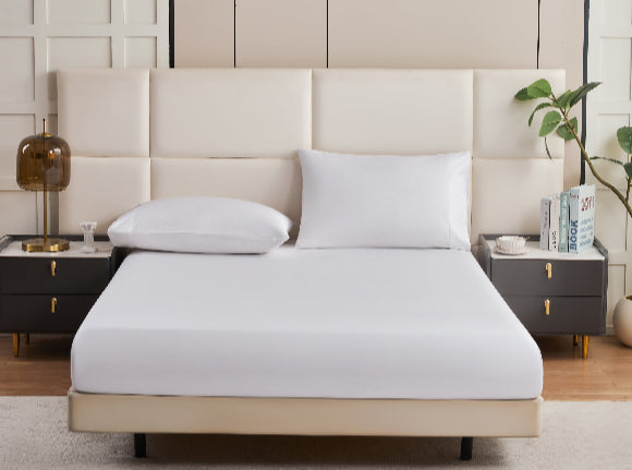 Our 4-piece cotton bedding set is designed to elevate your bedroom into a space of timeless elegance. The crisp white fabric flows smoothly across the bed, creating a sense of calm and balance. Subtle stitching and the natural drape of the material highlight a minimalist aesthetic, while the soft textures bring warmth and comfort to everyday living. Paired with clean-lined furniture, soft neutral tones, and curated details like greenery and modern accents, the room feels both refreshing and inviting. This set doesn’t just provide comfort for restful nights — it enhances the overall design of your space, blending functionality with refined style to create a serene, modern retreat.